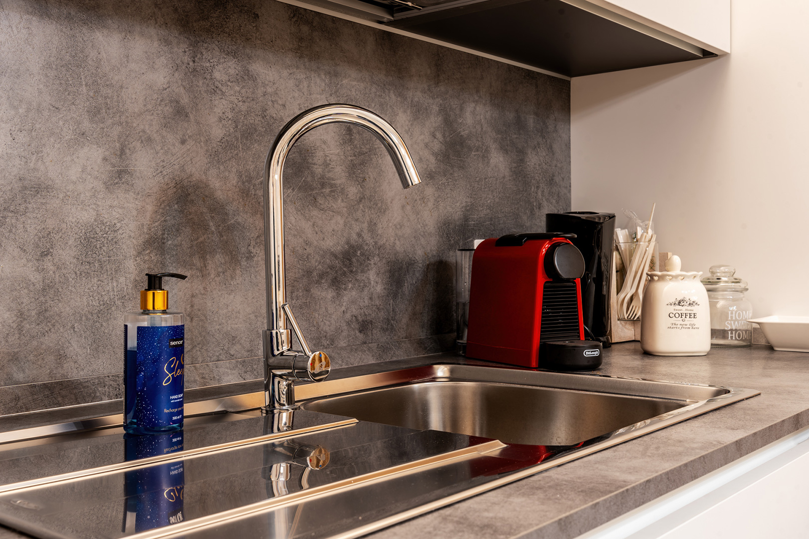 Il soggiorno del nostro appartamento è il cuore pulsante della casa, uno spazio pensato per farti sentire subito a tuo agio. Arredato con cura e attenzione ai dettagli, unisce elementi di design moderno a tocchi di tradizione, creando un’atmosfera intima e accogliente. Il comodo divano, ideale per rilassarti davanti alla TV o per leggere un buon libro, è accompagnato da decorazioni che richiamano la bellezza del territorio. Che sia per un momento di riposo o per trascorrere del tempo in compagnia, la zona living è il luogo perfetto per rilassarti.